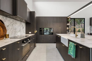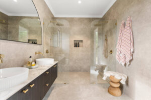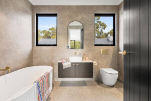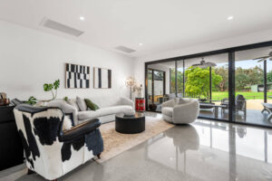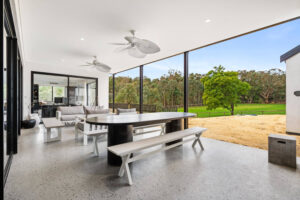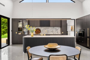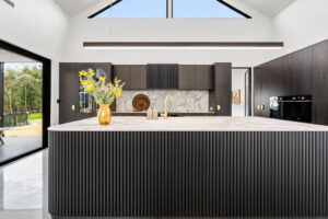 Nestled among Perth’s serene hills, this new house in Bedfordale epitomizes sophistication and elegance. With its barn-style elevation, natural stone accents, and sweeping raking ceilings, the home is designed with the entertainer in mind. Meticulous attention to detail is evident in features like unique light fittings, practical cabinetry, and full-height windows that flood the living areas with natural light, enhancing the airy, expansive feel.